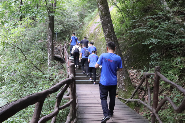 7月16日早上我們由合肥出發,在到達美麗的天堂寨風景區之后,經過短暫的休整,中午我們進行了本次團建的第一項活動,就是攀登海拔1700余米的天堂寨主峰。