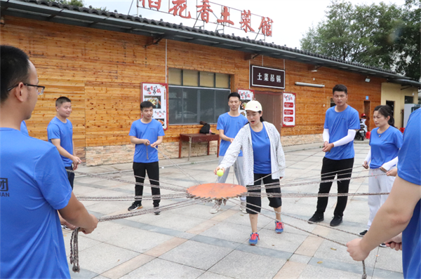 圖為拓展訓練中大家合作完成小游戲。