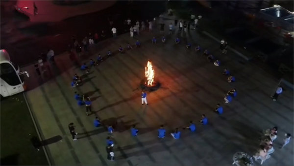 結束了一整天的拓展訓練后,大家依然精神飽滿,豐盛的晚餐過后,公司還為大家準備了篝火晚會,夜晚的天堂寨令人心曠神怡。由安徽嘉士總經理陶總點燃了早已準備好的篝火,大家圍成了一個大圈,伴隨著音樂大家一起歡樂的舞動了起來。